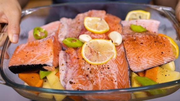 Sebzelerle pişirmek: Somonu patates, havuç, kabak, kuşkonmaz gibi sebzelerle birlikte pişirerek ekstra lezzet katabilirsiniz.