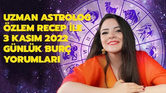 Astrolog Özlem Recep, sizler için 3 Kasım 2022 günlük burçları yorumladı. Ünlü astrolog müjde üstüne müjde verdi. Tutulmalar Retrolar derken fırsatlar tek tek kapı aralıyor. Ancak kararlara varmadan önce düşünmeniz gerekir. Aceleci kararlar fırsatlarınızı zedeleyebilir.