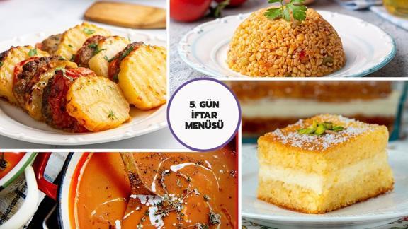 5. Gün iftar menüsü için hazırlık yapanlara özel güzel bir liste hazırladık. Bugünkü iftar menüsünde domates çorbası, fırında köfte, şehriyeli bulgur pilavı, cacık, revani ve mevsim salatası tarifi var. İşte 5. Gün iftar menüsü tarifleri...