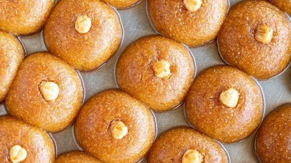 Üzerlerine bir fındık ya da fıstık yerleştirip, hafifçe bastırın.