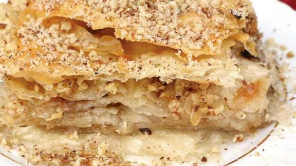 Teker teker tepsiye dizilen yufkaların her katına eritilen tereyağ ve ceviz dökün ve fırına sürün.