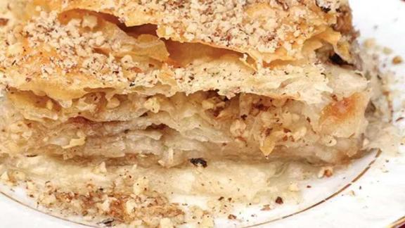 Teker teker tepsiye dizin ve her katına eritilen tereyağı ve ceviz dökün. Bu şekilde 10 kat hazırlayın.