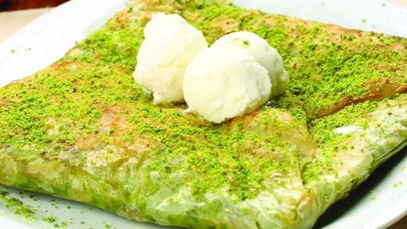 180 derecede ısıtılmış fırında kızarıncaya kadar pişirin. Fıstıkla ve kaymakla süsleyebilirsiniz afiyet olsun.