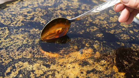 1 yemek kaşığı pekmezi hafifçe ısıtın.