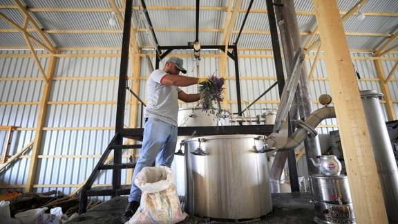 Bu iki türün tıbbi, kozmetik, temizlik, kolonya, şampuan, sabun gibi farklı kullanım alanları olduğunu belirten İnal, "Çiftlikte lavanta yağını çıkarttığımız ünitemiz var. Çiçekler hasat edildikten sonra damıtma kazanlarına taşıyoruz. Burada bitkinin yağı ve suyu çıkartılıyor. Bu ham maddeleri toptan ve perakende olarak satışa sunuyoruz." dedi.