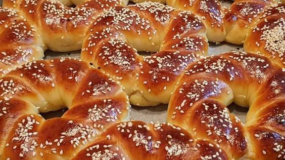 4. Mayalanan hamurdan cevizden biraz büyük bezeler ayırın. Bu bezeleri tezgahta rulo biçimine getirin. Ardından iki tane ruloyu birbirine sarın ve uç kısımlarını birleştirerek döndürün. Bu işlemi bütün bezeler bitene kadar tekrarlayın.