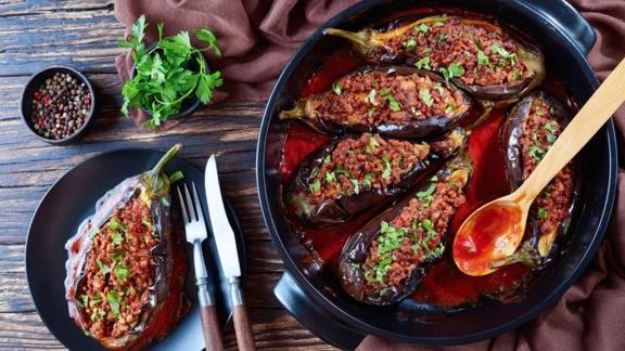 Tam bir vitamin deposu olan karnıyarık ülkemizde hemen hemen her bölgede meşhurdur. Pilav ve cacıkla beraber servis edildiğinde zengin bir sunum keyfi sağlar.