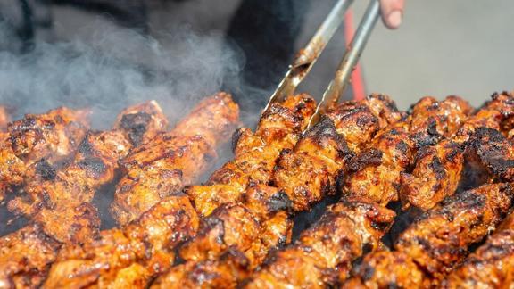 Şişlere bir parça tavuk göğsü bir adet çeri domates bir parça biber bir adet arpa soğan ekle.