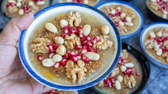 Tarçın ve nar, aşurenize özel bir aroma katar. Tarçın eklemeyi unutmayın, ancak fazla kullanmamaya dikkat edin.