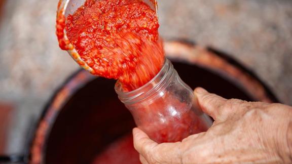 Kavanozları hazırlayın: Cam kavanozlarınızı iyice yıkayıp sterilize edin. Sıcak suya batırarak ya da fırında 10 dakika sterilize edebilirsiniz. Sterilize edilen kavanozların içine, kaynattığınız domatesleri dikkatlice doldurun.