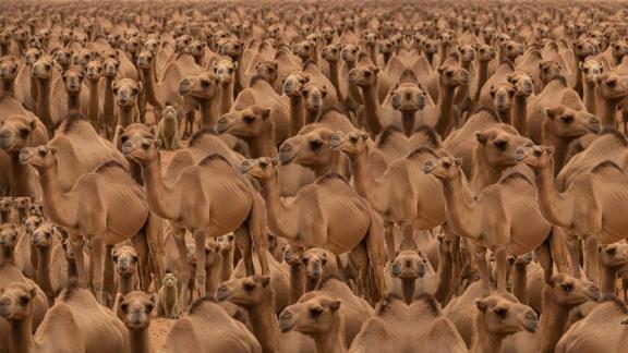 Bu görselde milyonlarca deve var ama aralarında bir yere gizlenmiş, develerle aynı renkte minik bir misafirimiz var. Kural basit: Kronometreyi aç ve kediyi bulmaya çalış. Süren: Sadece 5 saniye!