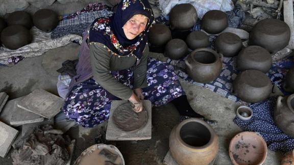 "Yapımı çok zahmetli. Dağın arkasından, yolu olmayan noktalardan çamur alıyoruz. Her çamurdan da yapamıyoruz. Çamuru karıştırıp sonrasında ayaklarımızla ezerek ıslatıyor, elimizle şekil veriyoruz. Taşla düzleştirip kurutuyor, tandırda yakıyoruz. Birçok işlemden geçiriyoruz. Şimdi kullanımı zor diye çelik tencereler tercih ediliyor. Önceden yemekler bu kaplarda yapılırdı. Bu ürünü yapıp köy olarak satardık. Güveç kabı verip arpa, buğday, un gibi malzemeler alarak geçimimizi sağlardık."