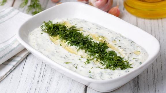 Sarımsakları ezip süzme yoğurtla birlikte bir kâseye alın.