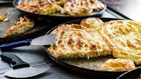 Üzerine salçası ve baharatları eklenerek karıştırılır. Son olarak patatesler eklenip güzelce karıştırılarak 5 dakika kadar karıştırılır ve hazırlanan iç harcı ocaktan alınarak soğumaya bırakılır. Yufka tezgaha serilir, üzerine fırça yardımıyla sıvı yağ sürülür.