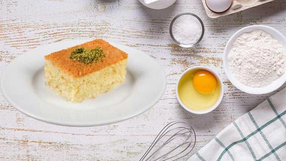 4. 170 derece fırında üstü kızarana dek yaklaşık 30 dakika pişirin. İlk sıcaklığı çıkınca şerbeti iyi çekmesi için keki dilimleyin ve sıcak kekin üstüne soğumuş şerbet dökün.