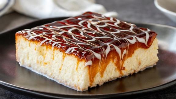 Ilınan keki çatalla delip üzerine sütlü sosu gezdirelim.