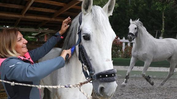 Çiftlikköy ilçesinde atlara merakını ve girişimci ruhunu bir araya getirerek 10 yıl önce binicilik üzerine tesis kuran Zekiye Baran Mutlu, atı "Kapuçino" ile hizmet vermeye başladı.