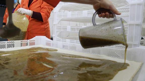 "Pazara sokulmayan, şekil olarak küçük görülen meyveleri çiftçilerden seracılardan alıyoruz, bunları püre haline getiriyoruz. Yine bölgemizdeki buzhanelerde biriktiriyoruz. Daha öncesinde, geçen yıl yazın yapıyorduk bu pestil kurutma işini fakat bizden kışın da talep olmaya başlayınca Atatürk Bahçe Kültürleri Merkez Araştırma Enstitüsü ile ortak çalışmaya imza attık. Türk damak tadına uygun, hiçbir katkı maddesi kullanmadan doğal olarak ürettiğimiz kivi ve hurma pestilleri için patent ve coğrafi işaret için başvurumuzu yaptık."