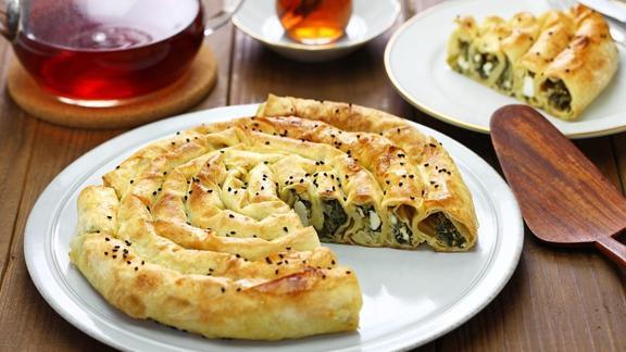 İlk yufkayı tezgaha serin ve üzerine eritilmiş tereyağı veya sıvı yağ sürün.