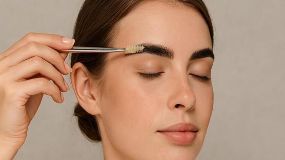 Az miktar şeffaf balmumu bazlı ürün ya da doğal içerikli sabitleyici kaş balmlarını kullanıp, kaş fırçası ile kömür çizgisini tarar gibi şekillendiriyor.