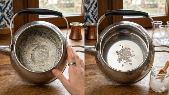 Mutfaklarda her gün kullanılan çaydanlıklar, suyun sertlik derecesine bağlı olarak zamanla kalın bir kireç tabakasıyla kaplanır. Bu kireç sadece kötü görünmekle kalmaz, aynı zamanda suyun geç ısınmasına neden olarak enerji israfına yol açar ve çayın o berrak rengini bozar. Sert kimyasallar ve saatlerce süren ovalama devri kapandı. Meğer çözüm, mutfak dolabınızın bir köşesinde sizi bekliyormuş!