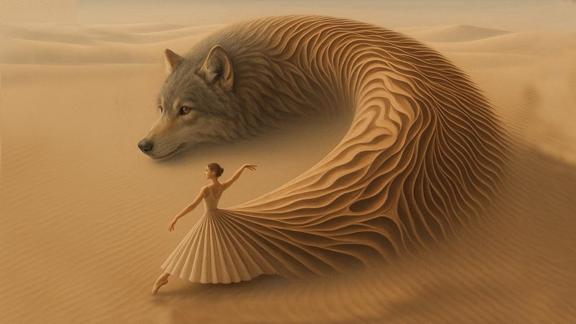 Bu tür görsellerde ilk gördüğün öğe, dikkatini neyin çektiğini değil; iç dünyanda neye daha duyarlı olduğunu gösterir. Resimdeki kurt içgüdüler, özgürlük, strateji kelimelerini ifade eder. Resimdeki kadın zarafet, duygu, insan ilişkilerini temsil eder.