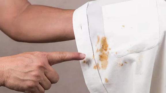 Bu sayede kıyafete gelen yağ lekesinin temizlendiği görülebilir.