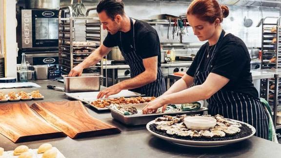 Margarin ve vanilyayı ekleyin. Yağ eriyince muhallebiyi 2-4 dakika blenderla çırpın ve tepsiye eşit şekilde dökün.