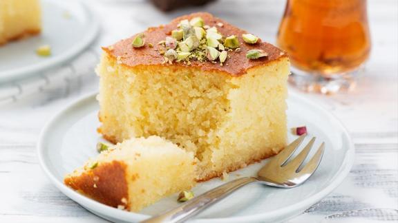Dinlenen tatlımızı dilimleyip, üzerine isteğe göre Hindistan cevizi ya da Antep fıstığı serperek servis