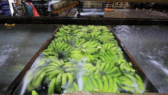 Burada işçiler tarafından ilk olarak sap kısmındaki atıklardan ayrılan muzlar, daha sonra yıkama havuzlarında birkaç dakika yıkanıyor. Daha sonra bu muzlar boyutlarına göre yeşil hâlde paketlenerek muz sarartma depolarına götürülüyor.