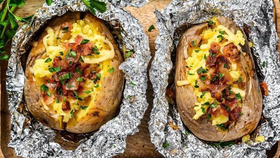 Patateslerin üzerini önce bir fırın kağıdı ile sarın. Daha sonra üzerini alüminyum folyo ile kaplayın.