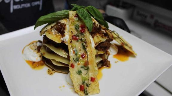 "Kurbana özel, gerek kuzuyla gerek dana etiyle yapılabilen bir yemek bu. Osmanlı saray mutfağının bir yemeği. Öncesinde ise, İzmir'de konaklayan paşalardan biri tarafından beğenilip saraya taşınmış bir yemek. Saray mutfağının vazgeçilmezi. Baharatlarla harmanlanmış et, sebze ve domatesle pişirilip kat kat kreplerin arasına konularak yapılıyor. Üzerine kızgın tereyağıyla yoğurt konularak sunum yapılıyor. İzmir tulumundan kıtır yaparak üzerine ekledik. Orijinal tarifte yok bu, biz de bir şey katmak için ekledik bu lezzeti. Yemesi güzel keyifli bir yemek. Kurban Bayramı’nda yapılabilecek basit bir yemek. İster kuzu, ister dana etiyle yapılabiliyor. Herkesin yapmasını tavsiye ediyorum."