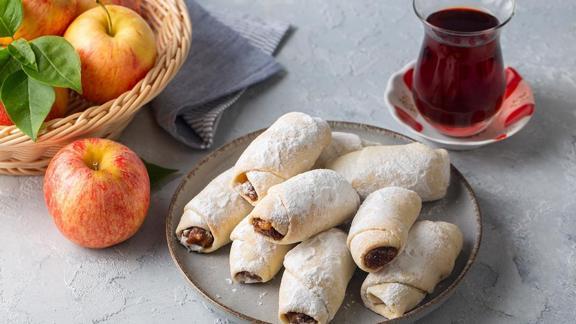 Kurabiyeleri şekillendirin: Hamurdan ceviz büyüklüğünde parçalar koparıp, avuç içinde yuvarlayın ve açın. İçine soğuyan elmalı harcı koyup, hamuru kapatın.