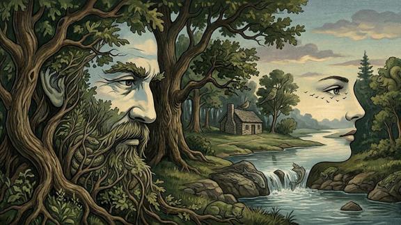 İşte dahilerin ayırıcı noktası! Yaşlı adamın sakallarını oluşturan dalların arasına ustalıkla gizlenmiş yılanı görebildiniz mi?