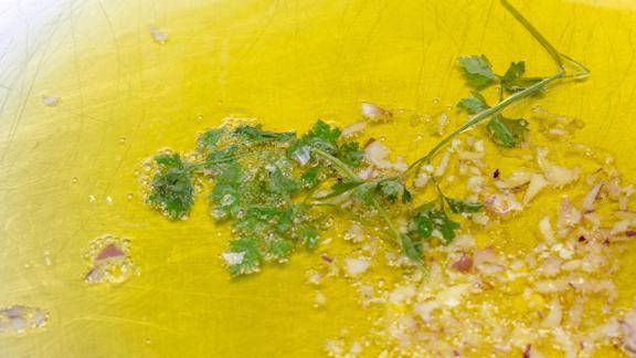Hafifçe karıştırıp yeşilliklerin sosa tamamen bulanmasını sağlayın.