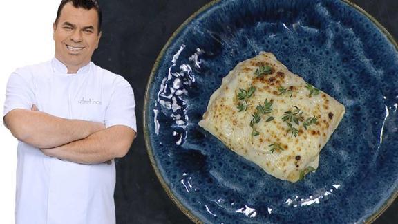 Tereyağını zeytinyağıyla eritiyoruz. Unu ilave edip kavuruyoruz. Sütü ekledikten sonra karıştırıyoruz. muskat, tuz ve karabiberi ilave edip biraz daha karıştırıyoruz. Bir yumurta sarısını beşamele ekliyoruz.