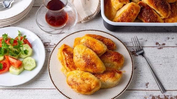 Kenarlarını kapatıp yuvarlak veya uzun poğaça şekli verin.