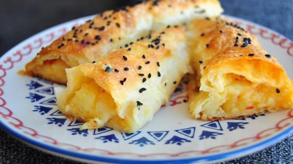 Çıtır çıtır patatesli börek tarifimiz servise hazır.