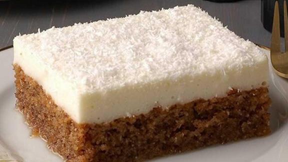 5. Kreması için krem şanti hariç diğer malzemeleri bir tencerede muhallebi kıvamına gelene kadar pişirin. Altını kapattıktan sonra toz krem şantiyi ekleyin ve blenderle 5 dakika çırpın. Soğumuş şerbetli kekin üzerine bu muhallebiyi yayın. Üzerine Hindistan cevizi veya fındık serpin.