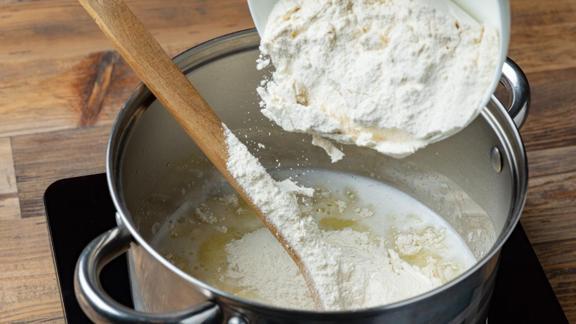 Tereyağını ve sıvıyağı tencereye koyun. Eriyince unu ilave edin ve kokusu çıkıncaya kadar karıştırın. Karıştırma işlemine hiç ara vermeyin. Ardından salçayı ekleyin.