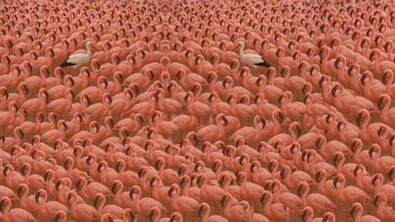 Optik illüzyon testinde flamingolar çoğunlukta bulunuyor ve hepsinin rengi birbirine benziyor. Flamingolar arasında 3 leylek bulunuyor. 2 leylek hemen görünüyor. Ama 3. Leylek nerede? Bu leylek gizlendiği için 10 saniye içinde tespit edilmesi adeta zeka sınırlarını zorlayabiliyor.