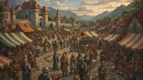Yukarıdaki Orta Çağ temalı pazar yerinde hayat tüm hızıyla akıyor. Atlar, tüccarlar, kaleler ve dağ manzarası arasında her şey oldukça normal görünüyor. Ancak bu görselde bir "davetsiz misafir" var: Küçük bir kedi! Sizce bu kedi nerede? 10 saniyede kediyi bulabilir misiniz?