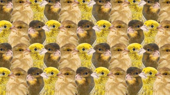 Optik illüzyon testinde beklenen, kanaryaların içindeki gizli yavru köpek görselinin bulunmasıydı. Ancak pek çok kişi başarılı olamadı.