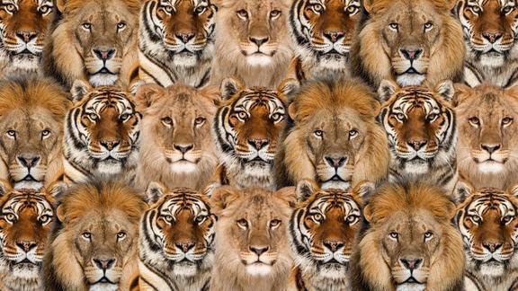 Zeka sınırlarını zorlayabilen bu optik illüzyon testinde çok sayıda kaplan ve aslan bulunuyor. Bunun yanı sıra tek minik kedi var. Üstelik tek görsel şeffaf, küçük boyutta ve yalnızca bir kısmı gözüküyor. Bu sebeple, kaplan ve aslanların arasından ayırt edilmesi adeta zeka sınırlarını zorluyor.