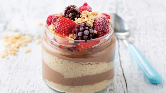 Bir kapta Aynes süt, un, nişasta, vanilya, toz şeker ve yumurtayı kırın ve karıştırın. Sütlü karışımı ipek süzgeç ile tencereye süzün. Orta ateşte sürekli karıştırarak pişirin. Kaynayan muhallebiyi ocaktan alın ve Aynes tereyağını ekleyin karıştırarak eritin. Ayrı bir kâsede Aynes krema ve pudra şekerini kabartın. Kabaran kremaya nutellayı ekleyin ve çırpmaya devam edin. Soğuyan magnolia kremasına çırpılmış nutellalı kremayı ekleyin ve karıştırın. Sunum kavanozlarına önce nutellalı magnolia daha sonra toz haline getirilmiş bisküviyi sırayla yerleştirin. Kavanozların en son katını magnolia kreması ile bitirdikten sonra 2 saat buzdolabında dinlendirin. Orman meyvesi ve kırık fındık ile soğuk servis edin.