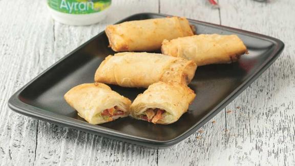 Domatesin iç çekirdeklerini çıkarın ve ince uzun şekilde kesin. Biberleri ince uzun kesin ve pastırmayı ince doğrayın. Sebzeleri ve pastırmayı bir kaba alın. Rendelenmiş Aynes kaşar peynirini ekleyin ve karıştırın. Yufkayı tezgâha serin dörde bölün ve üçgenleri üst üste toplayın. Üçgenlerin yuvarlak kısmına iç harcından koyun önce sağ ve soldan katlayın ve sonra ince kısmına doğru kıvırın. Ucunu suya batırarak kapatın. Derin yağda kaşar peynirine dikkat ederek kızartın. Aynes ayran ile tüketmenizi tavsiye ederiz.