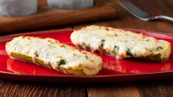 Kabakları ortadan ikiye kesin. İç kısımlarını bir kaşık yardımıyla dikkat bir şekilde çıkarın. Kabakları hafif kızara kadar kızartın ve fırın kabına alın. Ayrı bir karıştırma kabında Aynes beyaz peyniri, zeytinyağını, maydanoz, nane, reyhan, tuz ve karabiberi karıştırın. Kaşar peynirin yarısını harca ekleyin ve kabak içlerini doldurun. Aynes Kaşar peyniri ile üzerini kaplayın ve 180 derecede önceden ısıtılmış fırına üzeri kızarıncaya kadar atın. Aynes kaymaklı yoğurt ile servis edin.