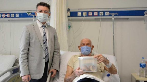 Denizli'nin Pamukkale ilçesinde yaşayan işçi emeklisi Halil Kul (73), idrar kaçırma ve ağrı şikayetiyle Pamukkale Üniversitesi Hastanesi'ne başvurdu. Üroloji kliniğinde muayene edilen Kul'un böbrek ve mesanesinde taşlar olduğu belirlendi.