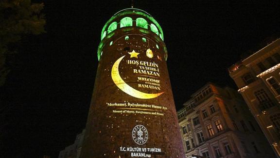 Görselle birlikte kuleye yansıtılan "Hoş Geldin Ya Şehr-i Ramazan" ve "Merhamet, Bağışlanma ve Huzur Ayı" yazıları ile İngilizce tercümeleri ilk gününde ilgi gördü.