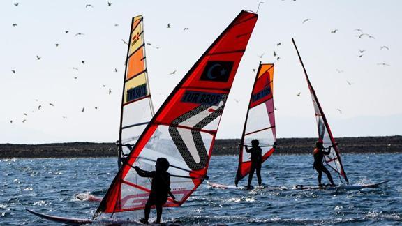 İklimi ve rüzgar yapısı su sporları için uygun bir ortam sağlayan Foça'da kış aylarında da elverişli hava, sporcuların yıl boyunca antrenman yapmasına, yarışlar düzenlenmesine imkan sunuyor.
